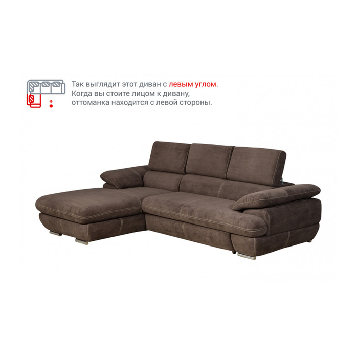 Угловой диван "Саджио", правый угол, ткань, коричневый