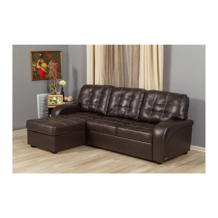 Угловой диван "Сидней", универсальный угол, натуральная кожа, коричневый