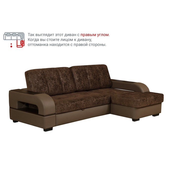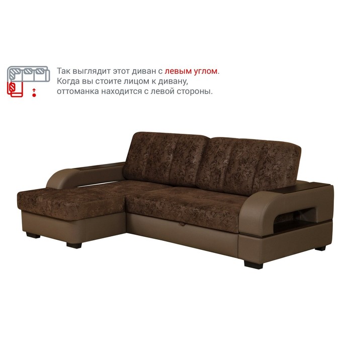 Угловой диван «Верона» с левым углом, цвет коричневый