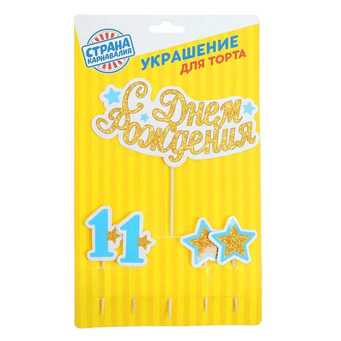 Украшение для торта "С Днем Рождения" малыш(набор топпер+ 4 шпажки)