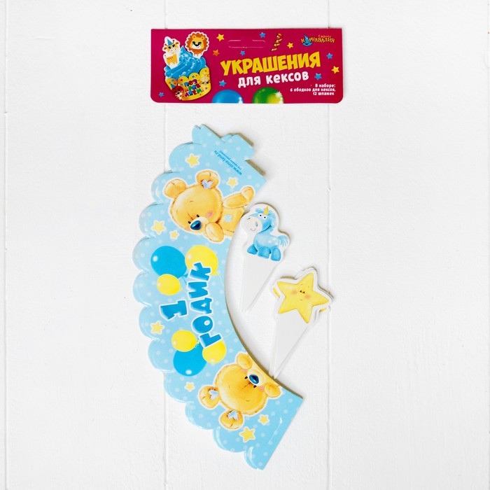 Украшения для кексов "1 годик", малыш, набор: 6 формочек, 12 шпажек