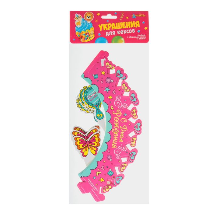 Украшения для кексов "С Днём рождения", набор: 6 формочек, 12 шпажек