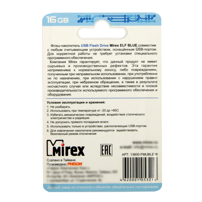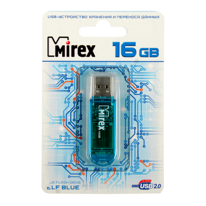 USB-флешка 16 Gb Mirex ELF BLUE, синяя подойдёт для тех, кому необходимо иметь съёмный носитель для хранения и перемещения данных различных форматов.