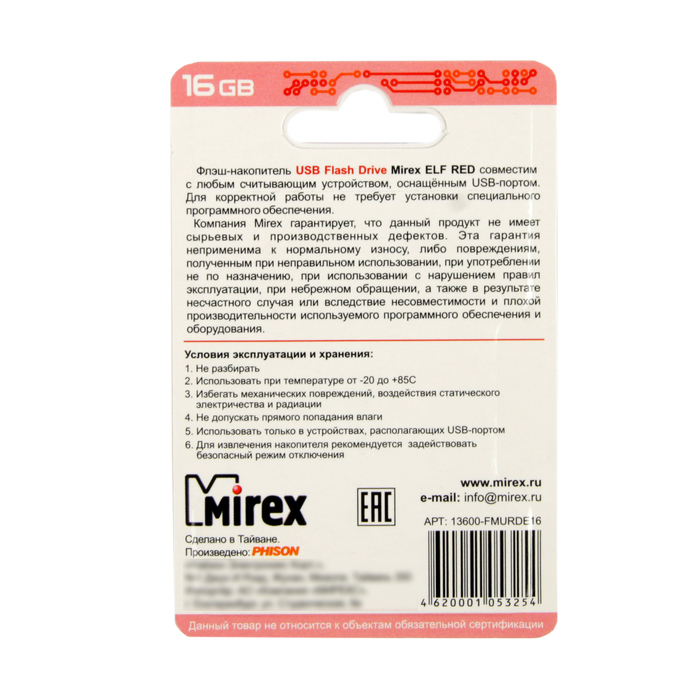 USB-флешка 16 Gb Mirex ELF RED, красная подойдёт для тех, кому необходимо иметь съёмный носитель для хранения и перемещения данных различных форматов.