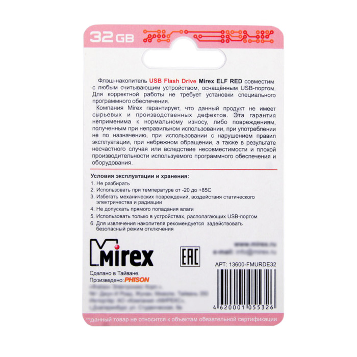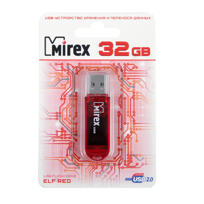 USB-флешка 32 Gb Mirex ELF RED, красная подойдёт для тех, кому необходимо иметь съёмный носитель для хранения и перемещения данных различных форматов.