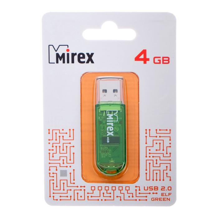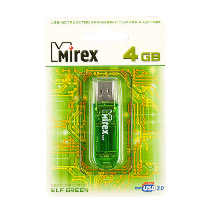 USB-флешка 4 Gb Mirex ELF GREEN, зеленая подойдёт для тех, кому необходимо иметь съёмный носитель для хранения и перемещения данных различных форматов.