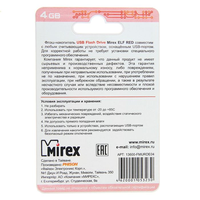 USB-флешка 4 Gb Mirex ELF RED, красная