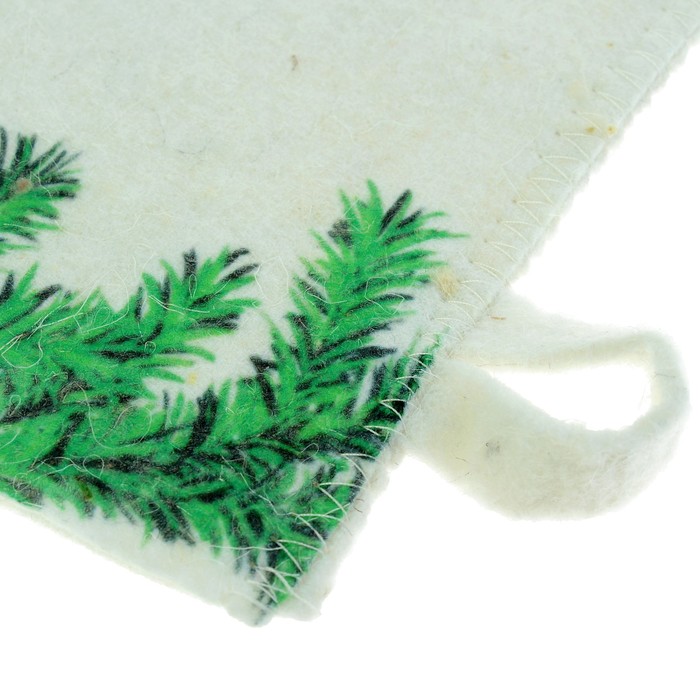 Варежка банная с принтом "Еловый рисунок" войлок, белая