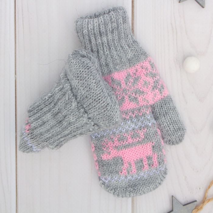 Варежки двойные детские "Северное сияние", размер 11, цвет серый меланж/розовый/белый 2с229_М 2023