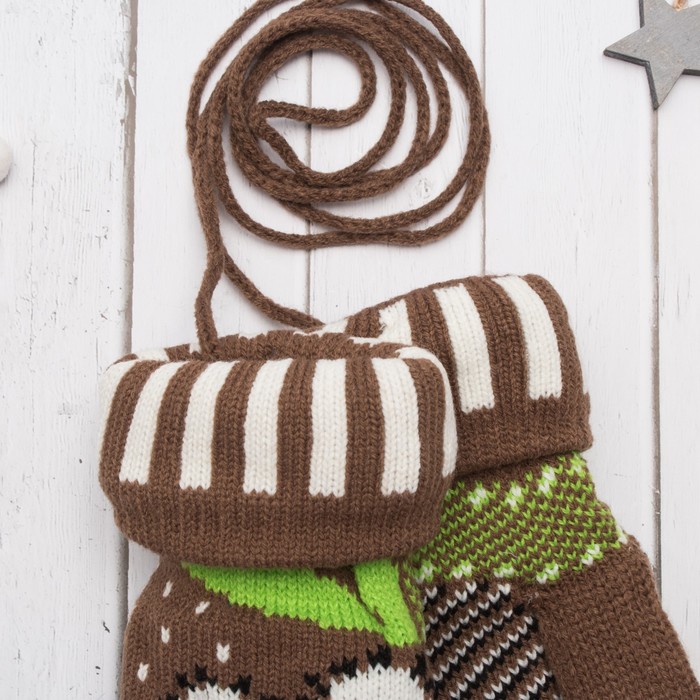 Варежки с подкладом молодёжные "Ромашка", размер 18 (р-р произв. 9), цвет коричневый 53905