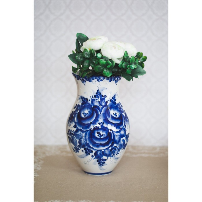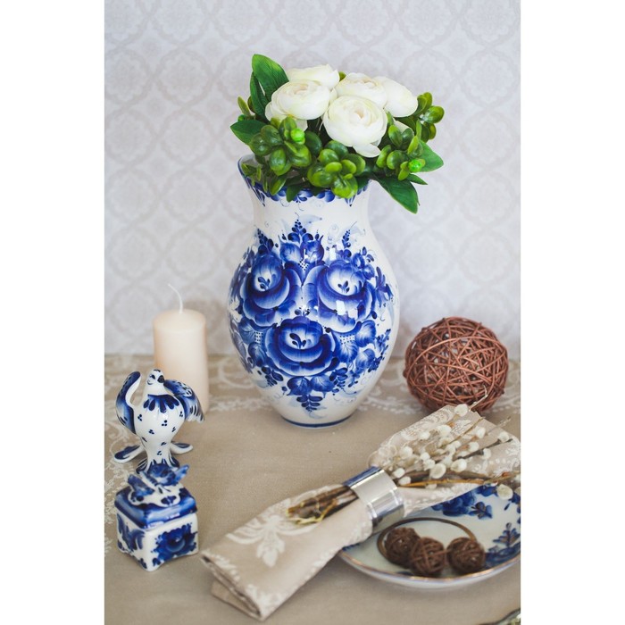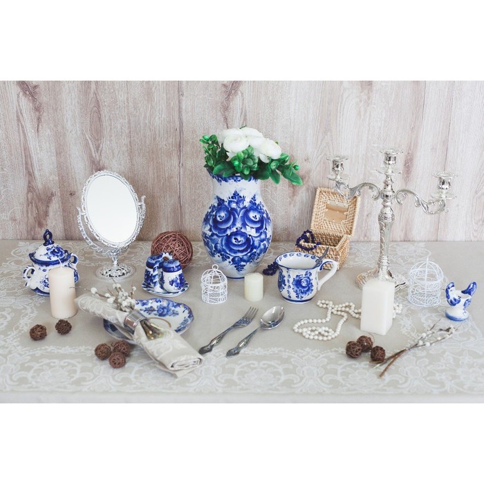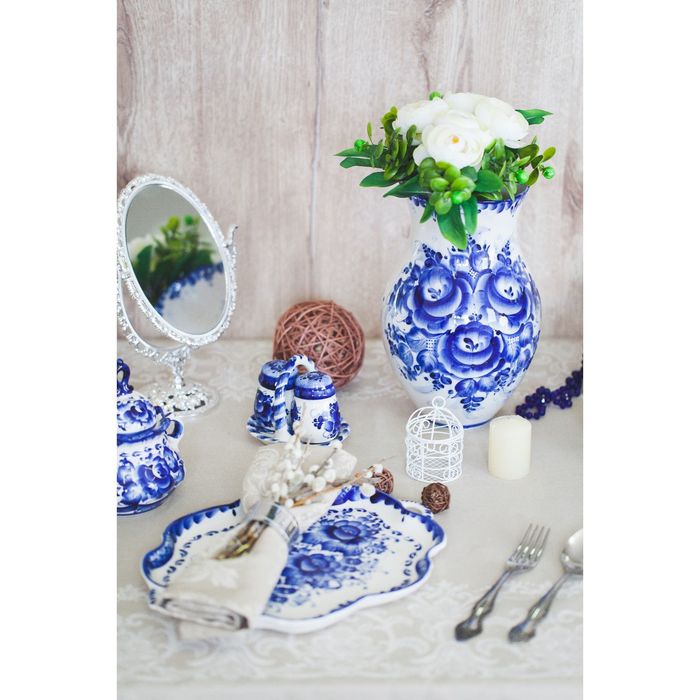 Она изготовлена вручную и декорирована авторской росписью «Гжель». Такое изделие станет прекрасным и изящным нарядом в интерьере у любой хозяйки.