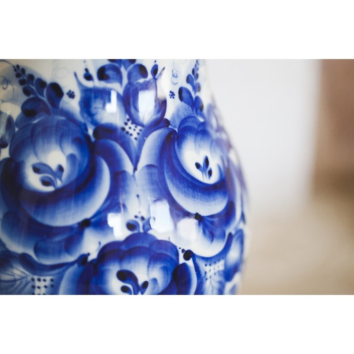 Гжель словно вобрала в себя красоту русской зимы: белизну снега, твёрдость льда, сияние инея, вычурность морозных узоров, синеву неба в ясные дни.