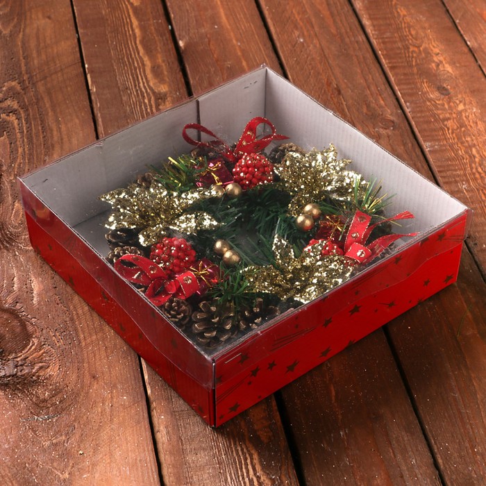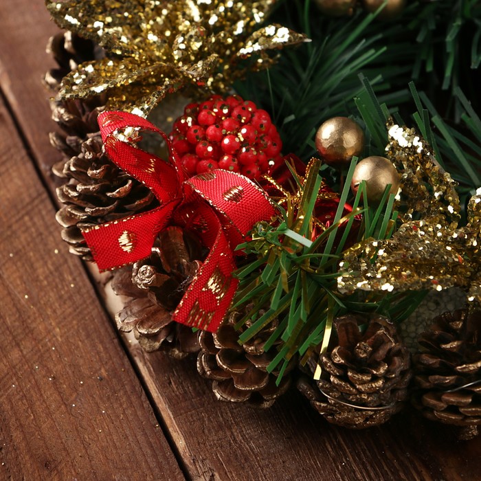 Венок новогодний d-19 см "Подарочек" с золотыми цветами
