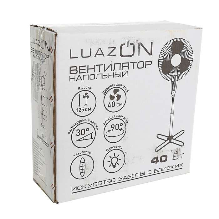 Вентилятор LuazON LOF-01, напольный, 40 Вт, 40 см, 3 режима, бело-серый
