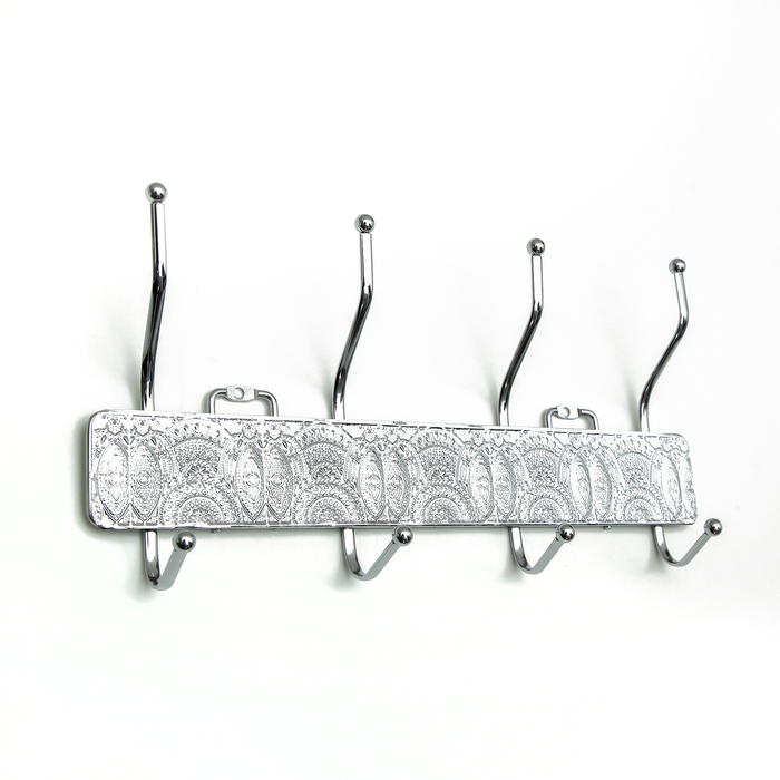 Вешалка на 4 двойных крючка 33х16х5,5 см "Креатив" цвет серебро
