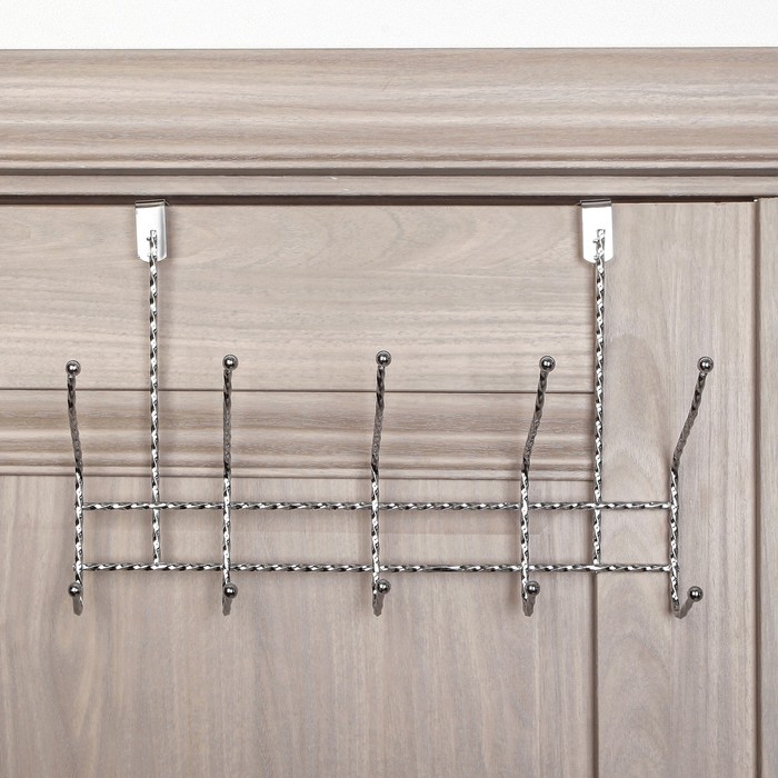 Вешалка надверная, 5 двойных крючков 38х12х24 см, цвет серебро (ширина двери 4,8 см)