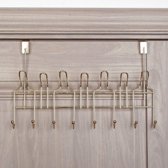 Вешалка надверная, 8 двойных крючков 42х12х24 см, цвет золото (ширина двери 4,8 см)