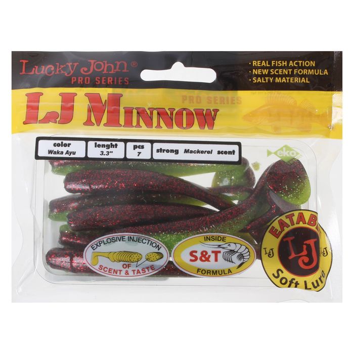 Lucky John Pro S Minnow по внешнему виду напоминает маленькую рыбку с очень подвижным хвостиком. Эффективно работает при ловле на любую джиговую оснастку. Изготовлен из силикона, устойчивого к механическим повреждениям и другим внешним воздействиям. Отлично сохраняет форму, выдерживает множество поклёвок и прочно держится на крючке.