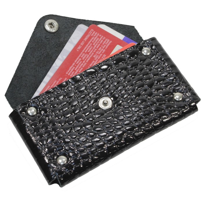 Визитница для своих визиток, кнопка, натуральная кожа, цвет чёрный кайман