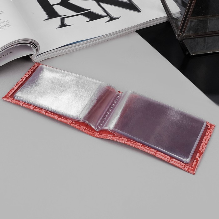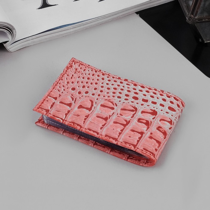 Визитница горизонтальная, 1 ряд, 18 листов, кайман, цвет красно-розовый