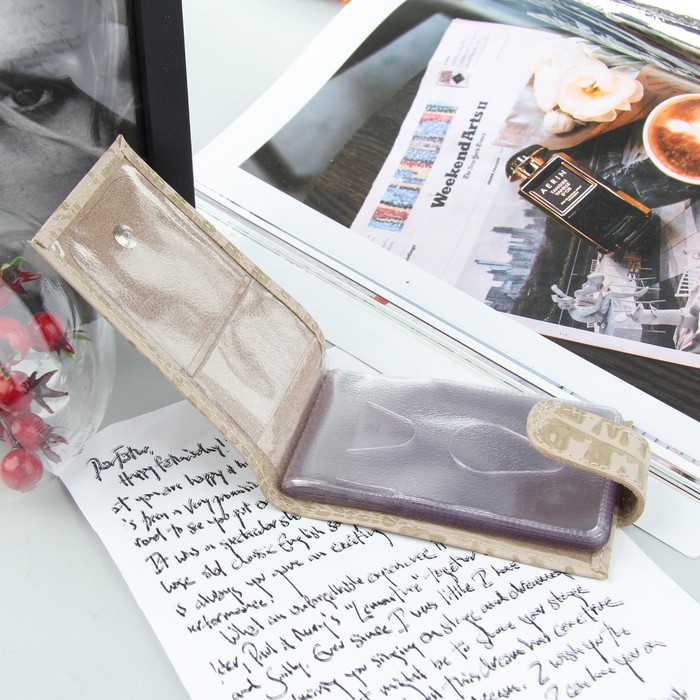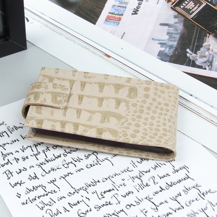 Визитница на кнопке, 1 ряд, 16 листов, кайман, цвет бежевый