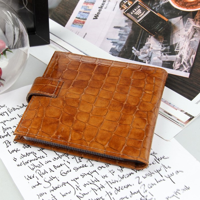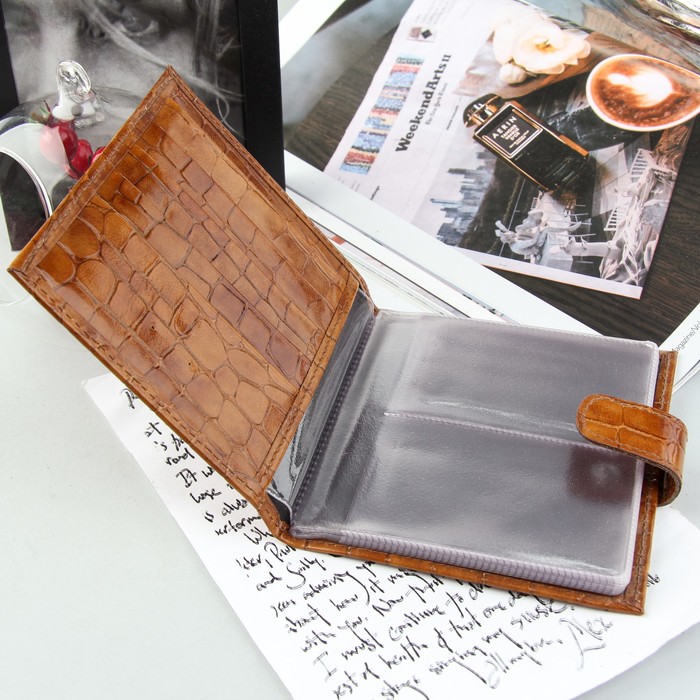 Визитница на кнопке, 2 ряда, 16 листов, цвет коричневый