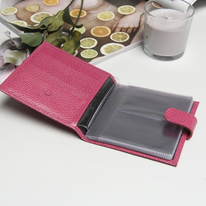 Визитница на кнопке, 2 ряда, 16 листов, флотер, цвет фуксия