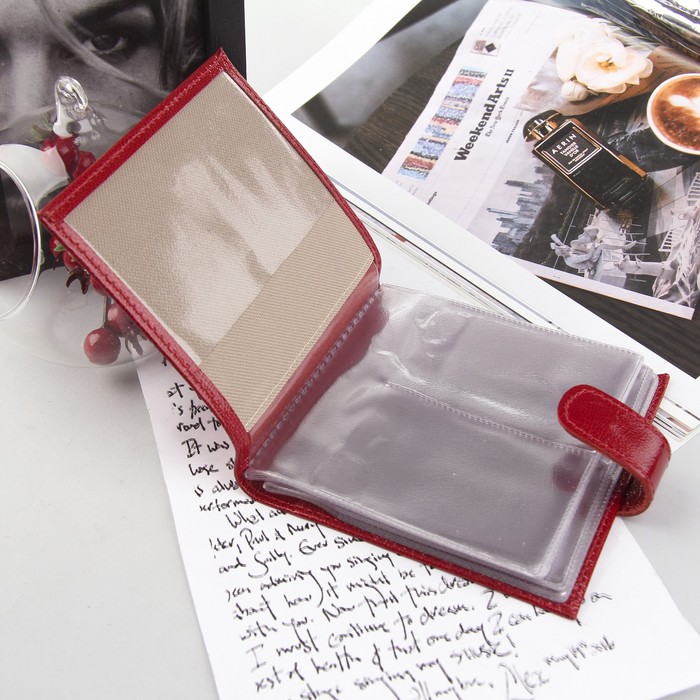 Визитница на кнопке, 2 ряда, 24 листа, цвет красный