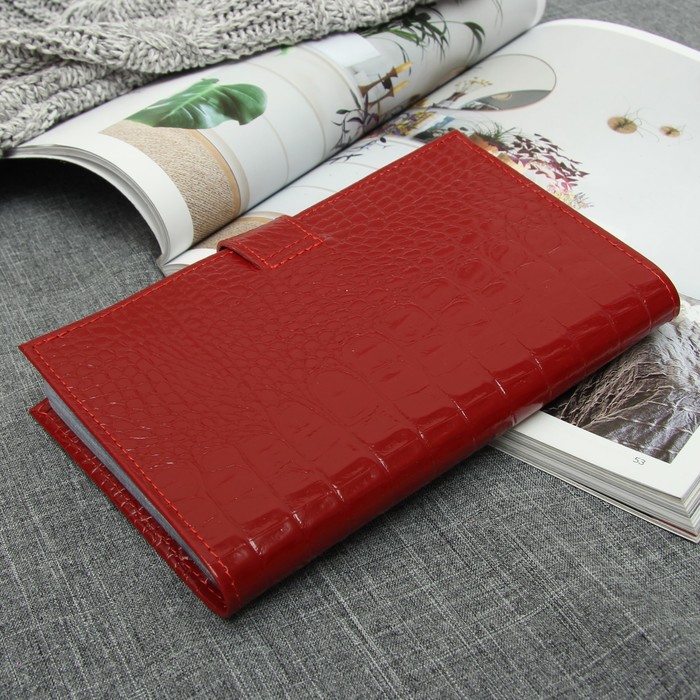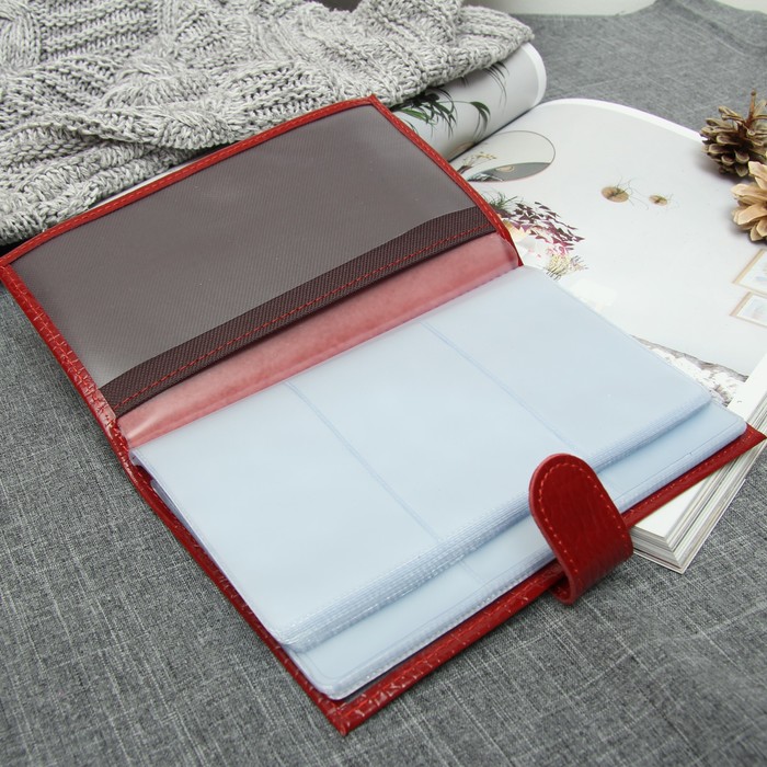 Визитница на кнопке, 3 ряда, 24 листа, красный кайман