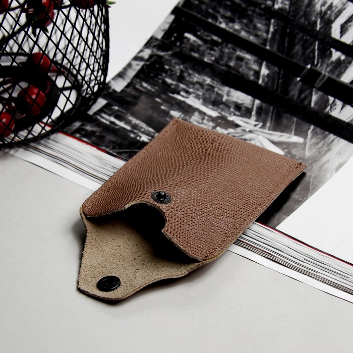Визитница, отдел на кнопке, ящер, цвет бежевый