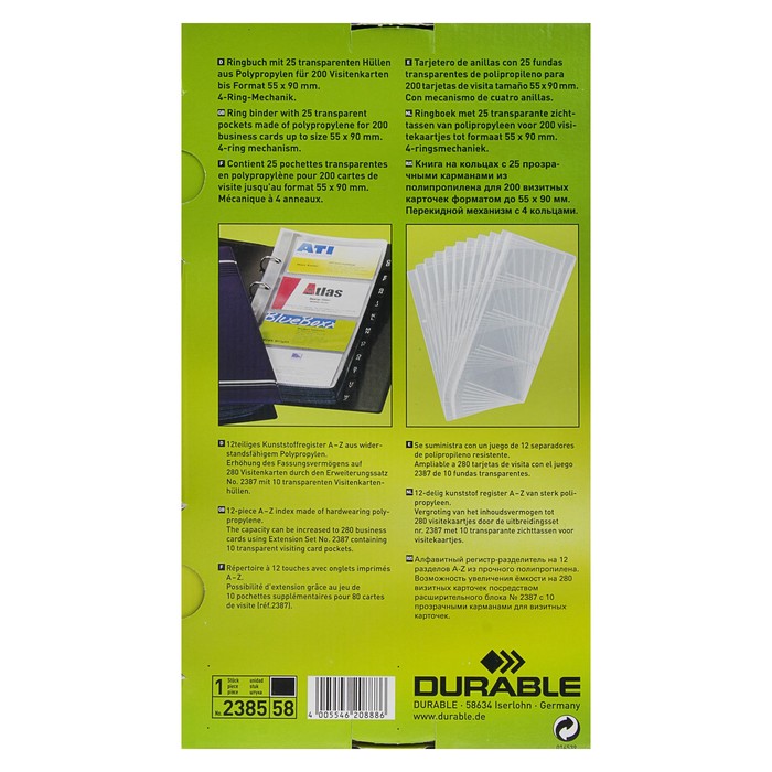 Визитница переносная Durable Visifix, 57х90 мм, под 200 визиток, 25 вкладышей, ПВХ , серая