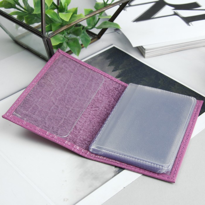 Визитница вертикальная, на 10 карт, скат, цвет сиреневый