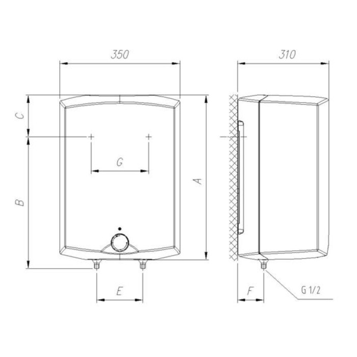 - Подводка воды: сверху.