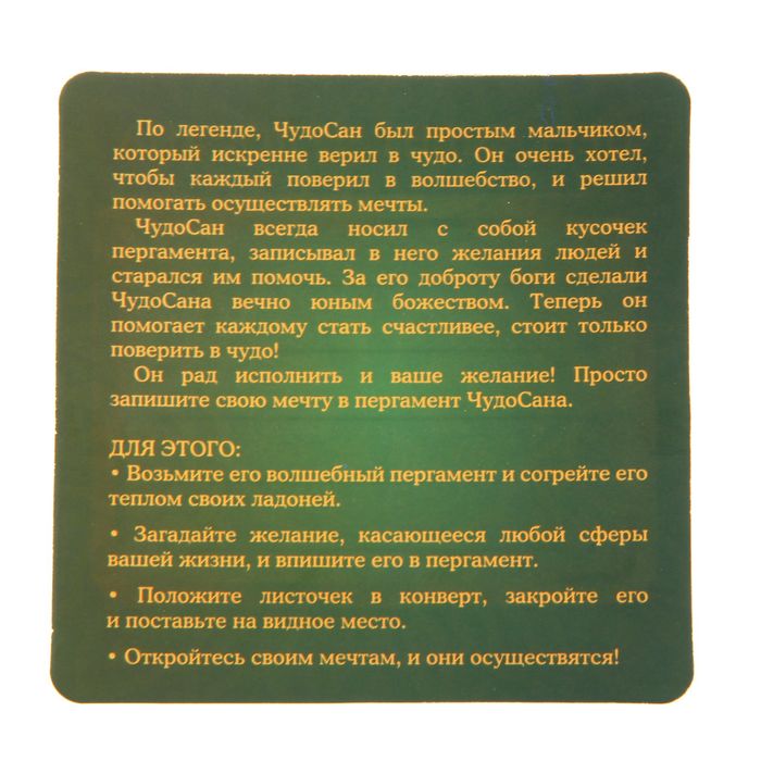 Волшебный талисман ЧудоСан "На привлечение богатства!", 10х10 см