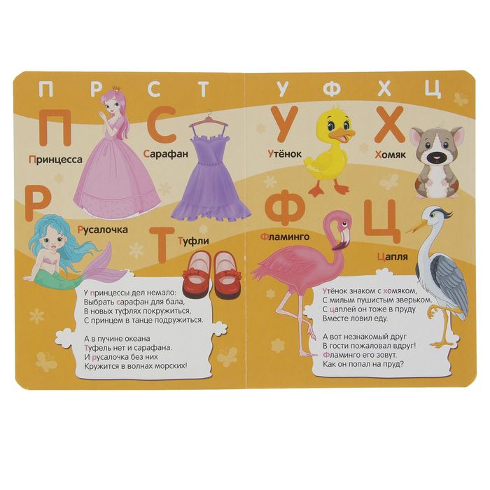 Эта красочная книжка поможет маленьким принцессам выучить алфавит. А чтобы учить буквы было легко и интересно, на каждом развороте их ждут помощники - веселые стихотворения и рисунки, в которых спрятались слова, начинающиеся на определенную букву.