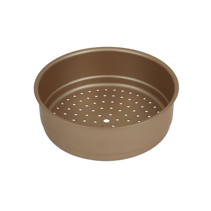 Эта пароварка подойдёт для тех, кто предпочитает здоровую еду. Изделие выполнено из алюминия и имеет антипригарное покрытие. Этот предмет позволит вам превратить обычную кастрюлю в посуду для варки на пару. Вставку также можно использовать как дуршлаг.
