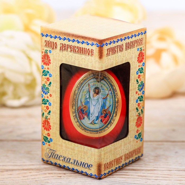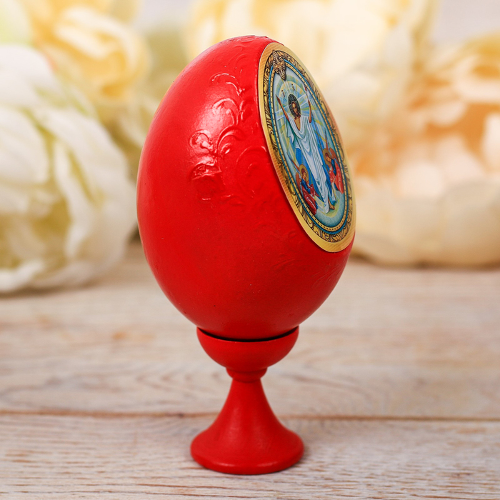 Яйцо является главным атрибутом Пасхи, символом возрождения и вечной жизни. Именно такое красное яйцо на подставке да еще с канонической иконой Воскресения Христова, принесет в Ваш дом ощущение торжества и душевного уюта. А что может быть ценнее, чем праздничное настроение у Ваших близких и дорогих людей.