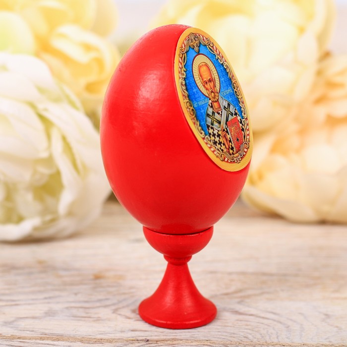 Яйцо является главным атрибутом Пасхи, символом возрождения и вечной жизни. Именно такое яйцо на подставке да еще с канонической иконой Николая Чудотворца, принесет в Ваш дом ощущение торжества и душевного уюта. А, что может быть ценнее, чем праздничное настроение у Ваших близких и дорогих людей.
