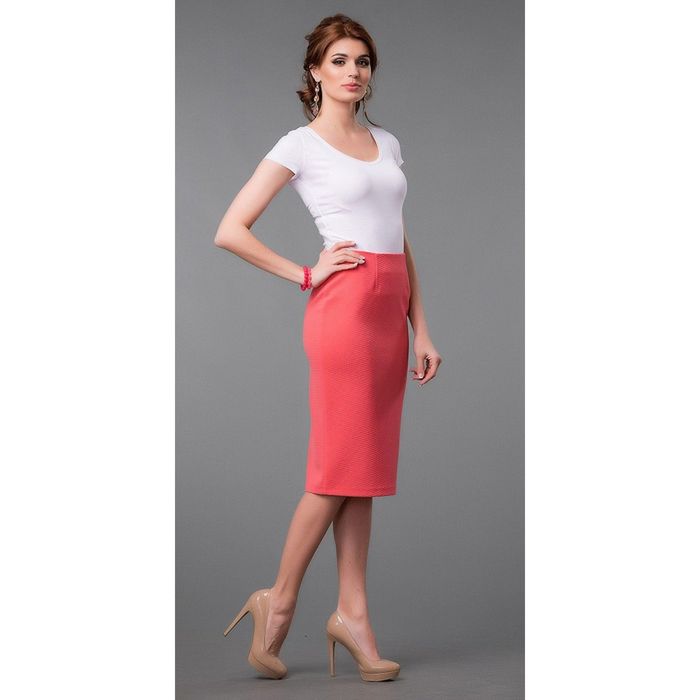 Элегантная юбка-карандаш изготовлена из фактурного трикотажного полотна.