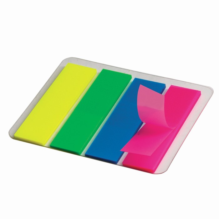 Закладки с клеевым краем пластиковые STAFF эконом неоновые, 12x45 мм, 4 цвета по 25 листов, европодвес