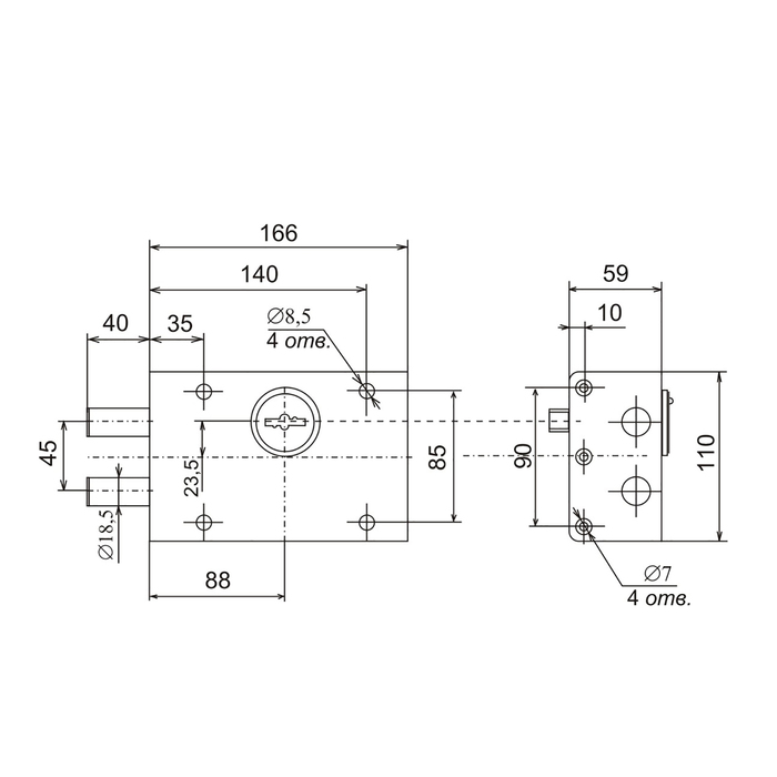 Замок накладной "Сенат", ЗНС 4-2, 110, без ответной планки, двухсторонний, 3 ключа