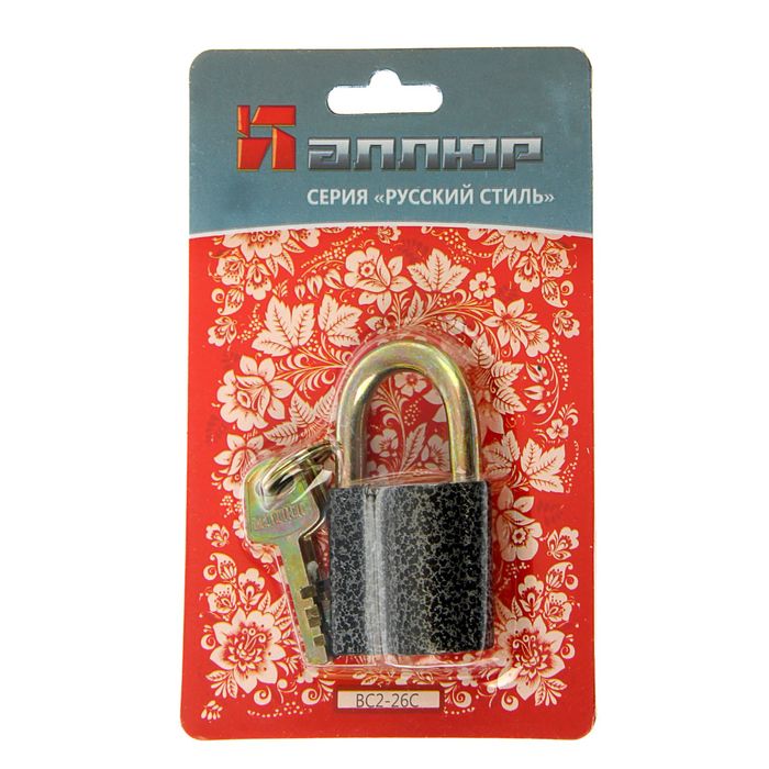 Замок навесной "АЛЛЮР" ВС2-26С, дужка d=8 мм, 3 ключа с двойной нарезкой, цвет антик
