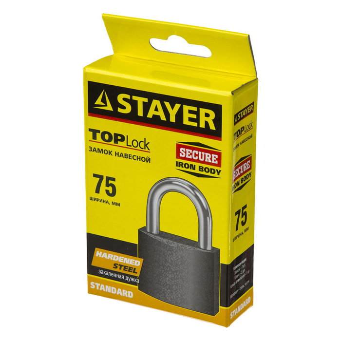 Замок навесной STAYER STANDARD, 75 мм, металлический корпус, закаленная дужка