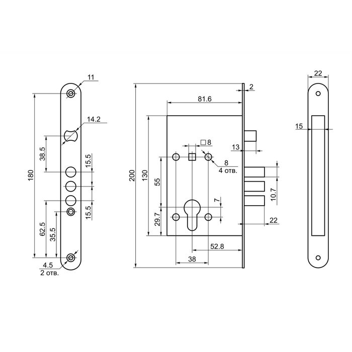 Замок врезной BORDER ЗВ 4-31/55 78919, б/о, без ц/м, б/ручки