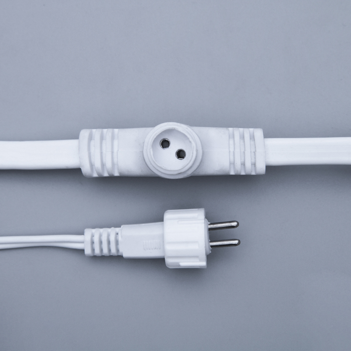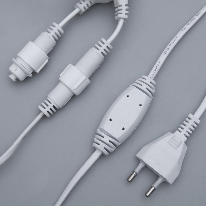- соединяются — стало реальностью создание огромного сияющего шлейфа, достаточно лишь соединить гирлянды между собой при помощи специальных комплектующих. Математика предельно проста: достаточно разделить число LED-ламп контроллера на число LED-ламп гирлянд, и вы получите возможное количество подключаемых комплектов.