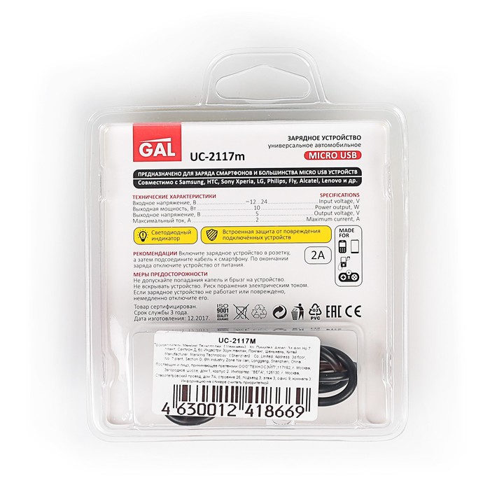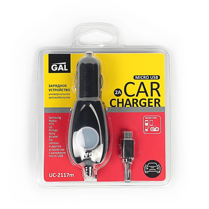 Зарядное устройство автомобильное GAL UC-2117M, 2 А, micro USB, черное
