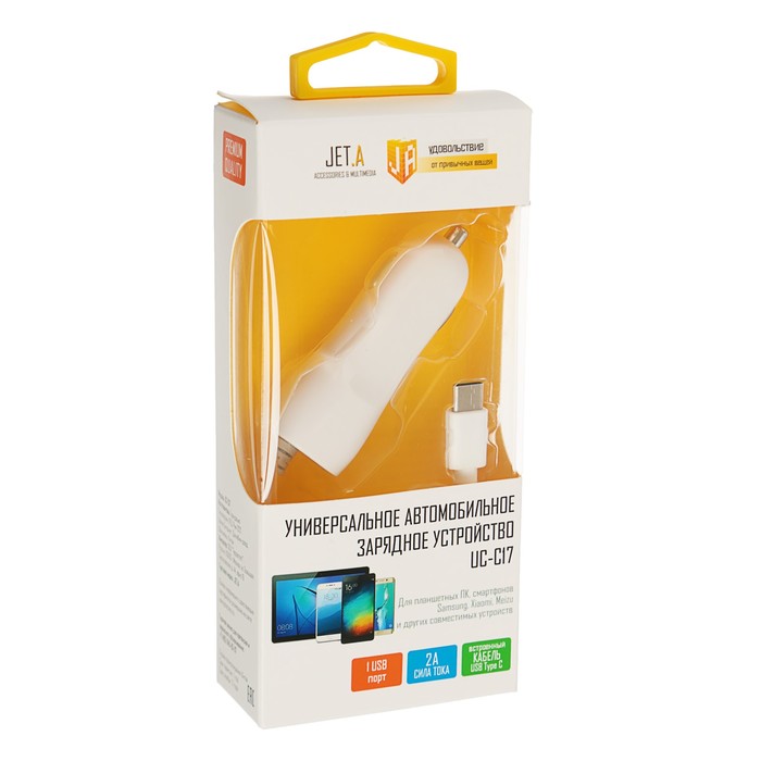Зарядное устройство автомобильное Jet.A UC-C17, USB TypeC, белое
