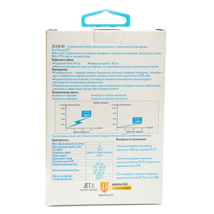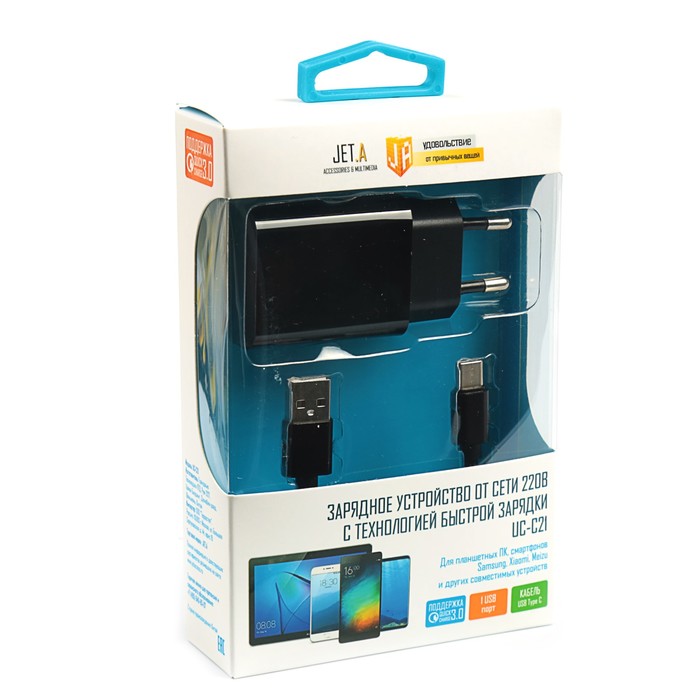 Зарядное устройство Jet.A UC-C21, USB TypeC, чёрное