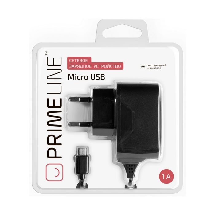 Зарядное устройство Prime Line (2302), micro USB 1000 mA, черное