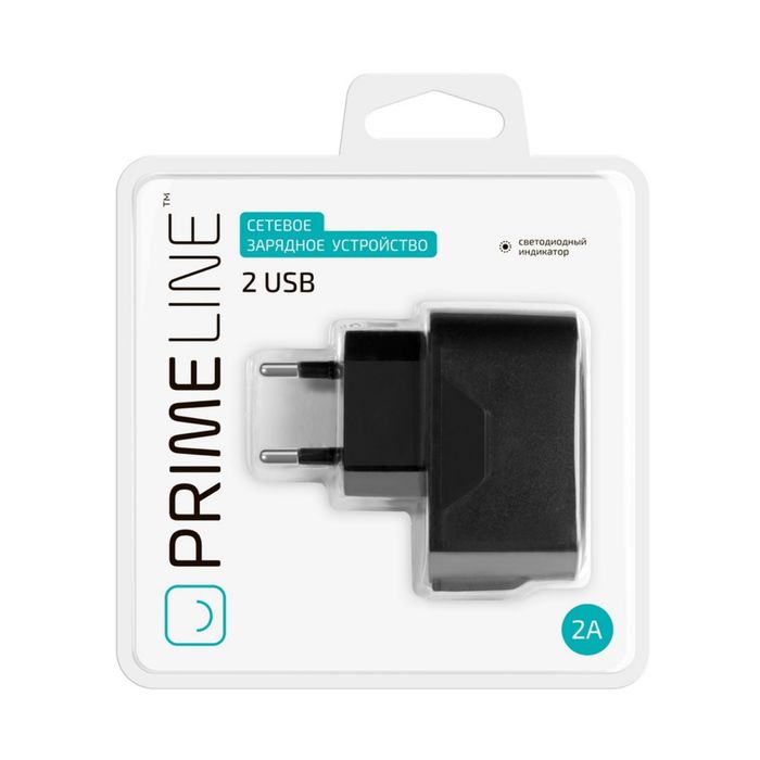 Зарядное устройство Prime Line (2311) 2 USB 2100 mA, черное